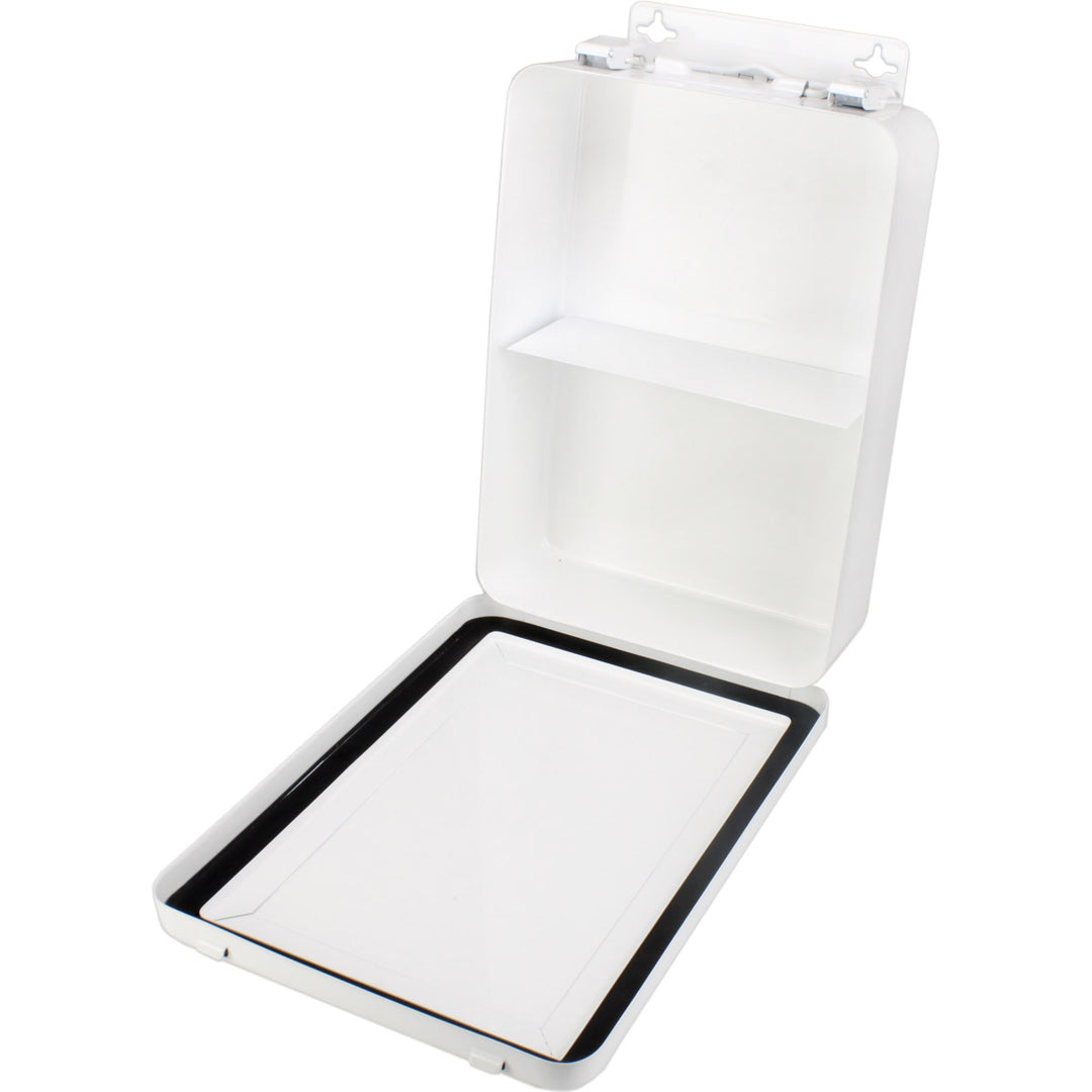 Assemble a compact and resilient first aid or emergency kit with this 16-Unit Empty Metal Case. Designed for vertical configuration, this robust metal case features a single internal shelf, sturdy hinges, and a protective gasket to help shield contents from dust and moisture, ensuring your supplies stay secure.