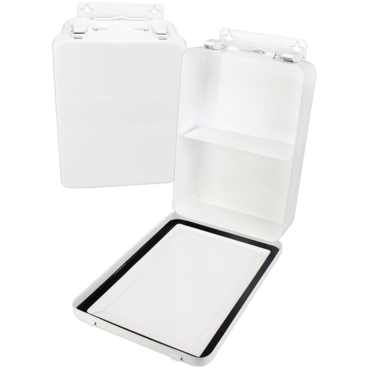 This vertically oriented case includes a convenient hanger for easy wall mounting, making it an ideal choice for creating a readily accessible first aid station in any space.