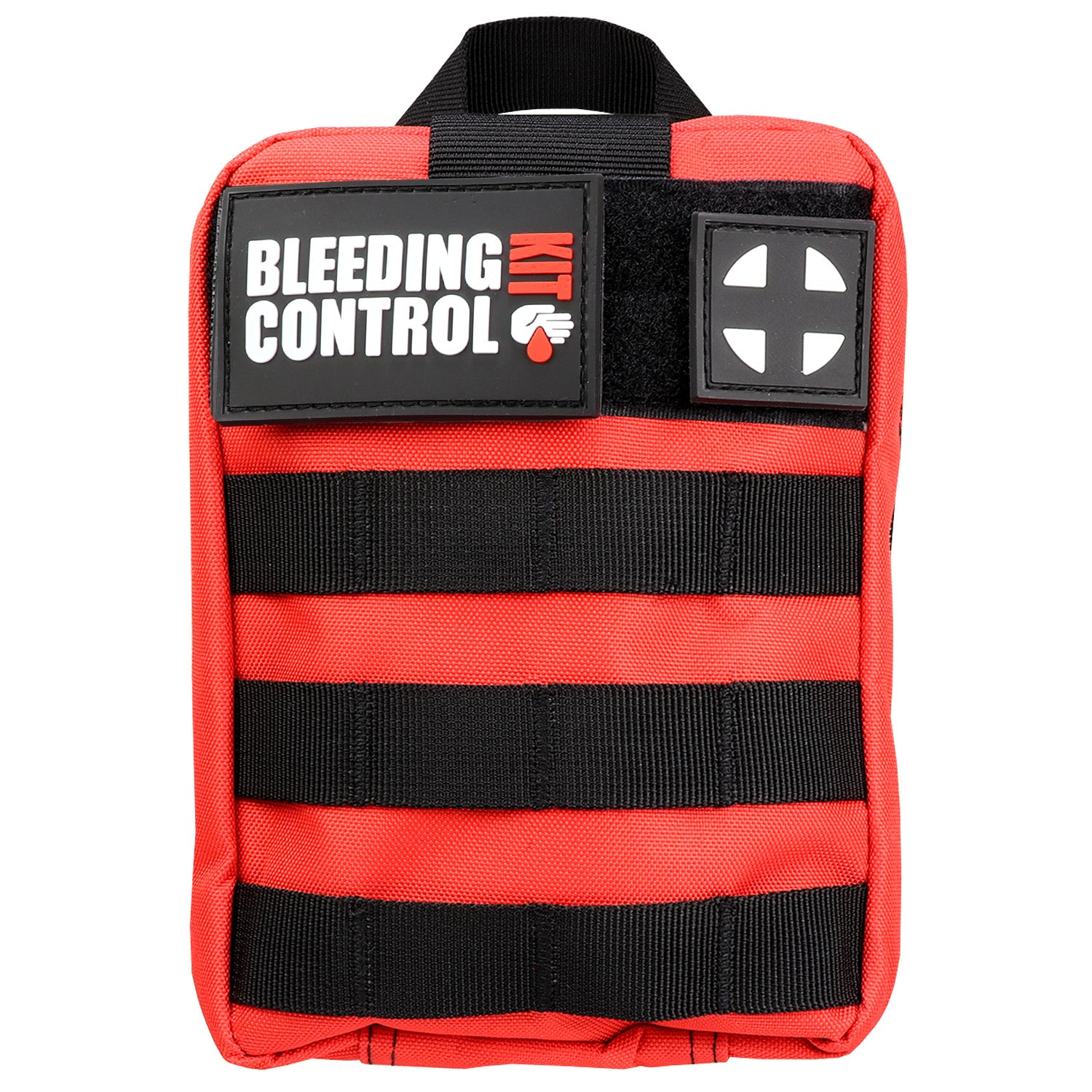 Individual Bleeding Control Kit in a red Molle bag with Bleeding Control label, designed for emergency use.
