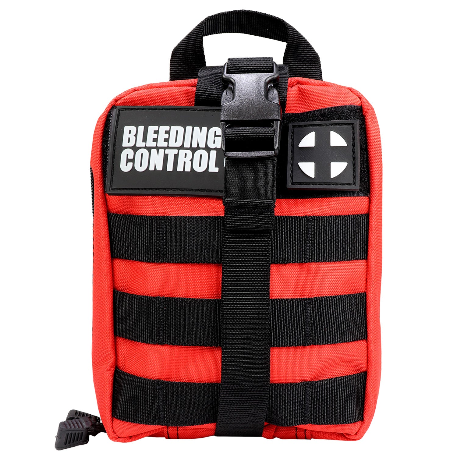 Individual Bleeding Control Kit in a red Molle bag featuring 'Bleeding Control' label and adjustable strap.