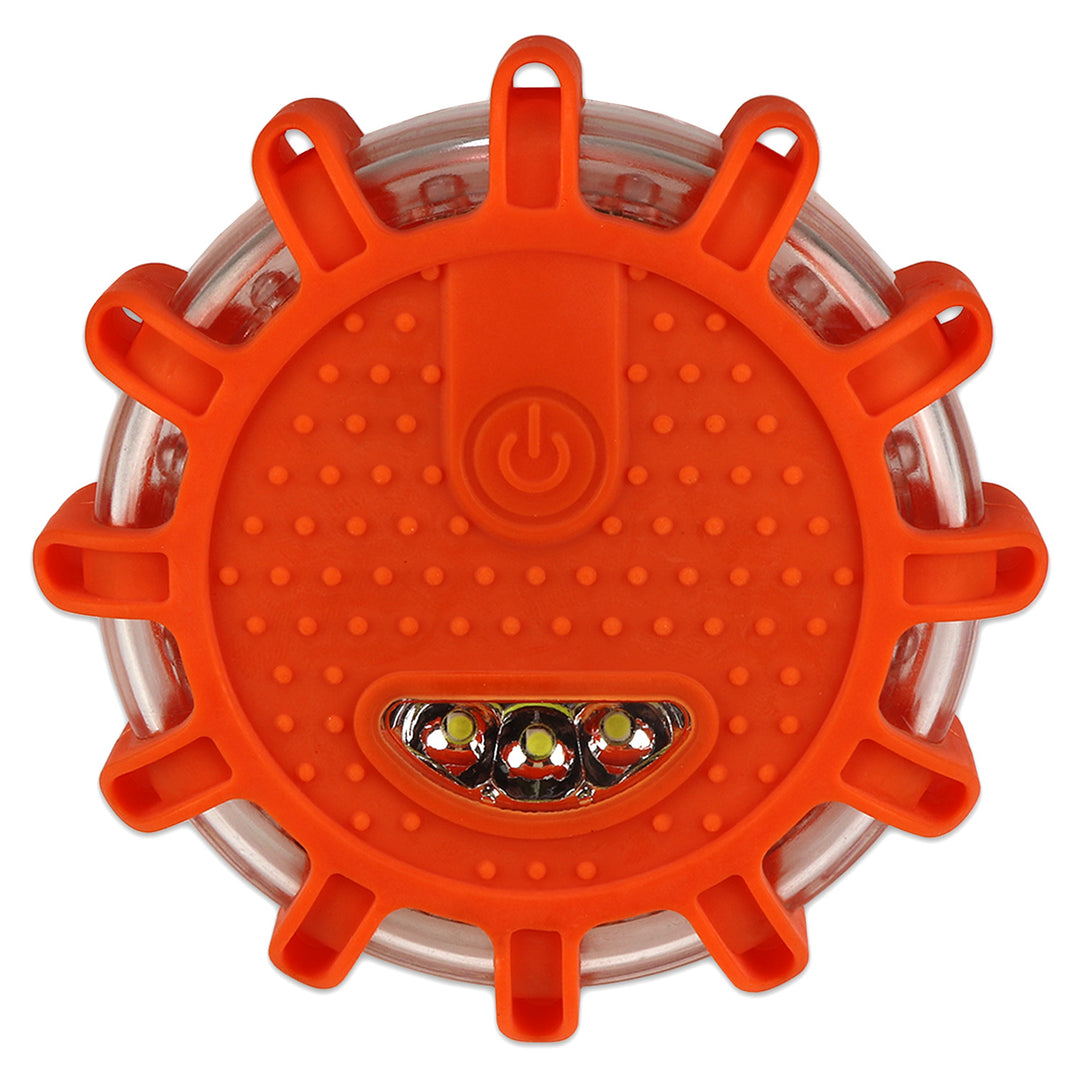 This durable, heavy-duty LED road flare features 15 LEDs with 9 versatile settings to ensure visibility and safety. Designed to endure extreme conditions, it can even withstand being run over by a car. The flare includes a hook for hanging on a hood and a magnetic base for secure placement anywhere on your vehicle. Powered by 3 AAA batteries (not included), it’s a reliable safety tool for emergencies or roadside situations.