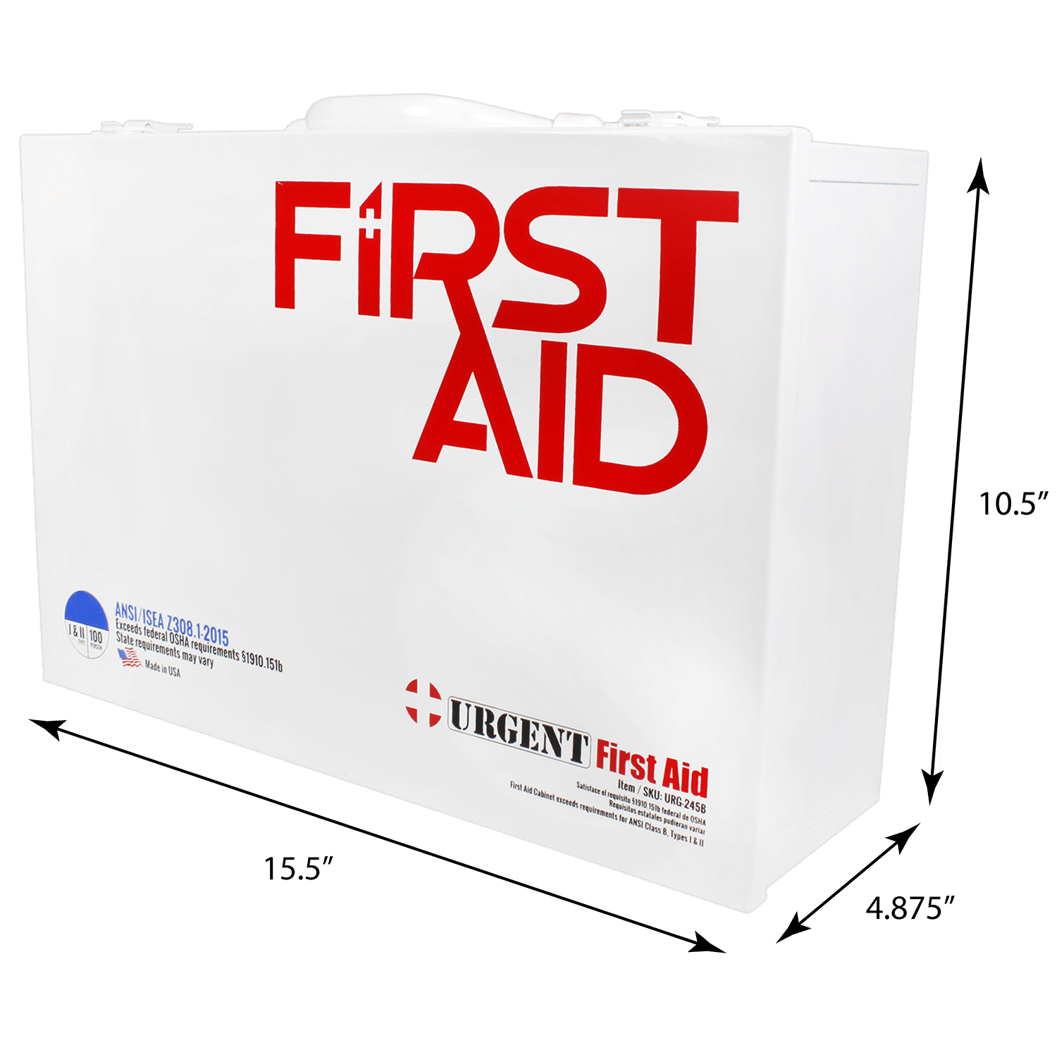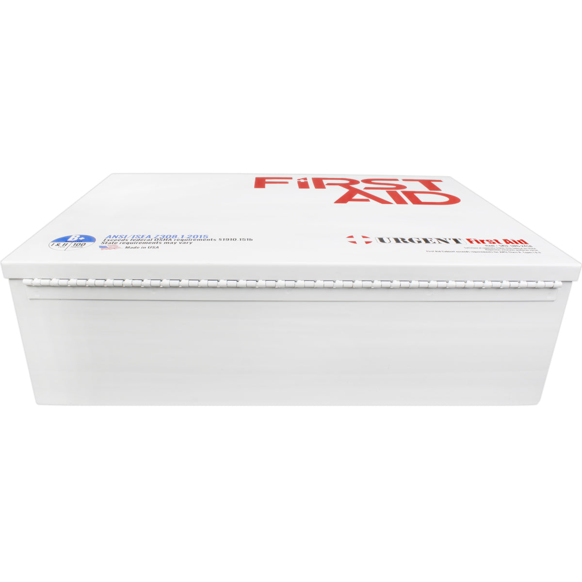 While we have found that many manufacturers are producing “ANSI 2015 Compliant” first aid kits and cabinets, but the guides inside do not meet minimum content for ANSI compliance. This cabinet includes the 2015 ANSI compliant Urgent First Aid® Guide: