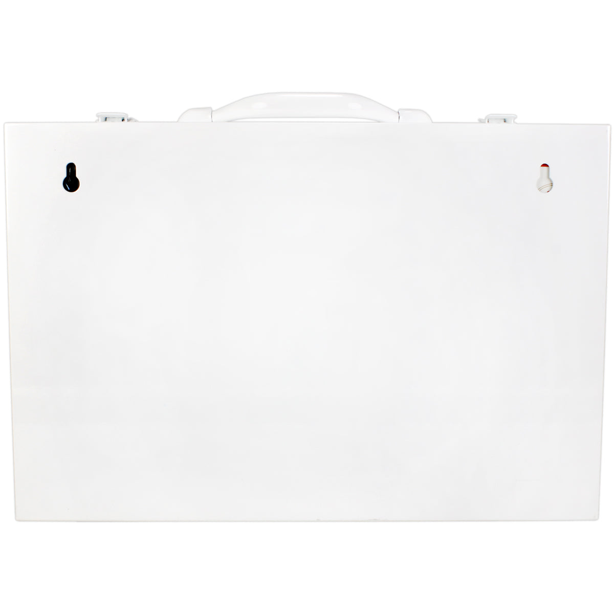 Assembled in California from domestic and imported content in a sturdy powder coated 20 gauge steel case with double draw-bolt latches and 90 degree continuous hinges (which makes a convenient working shelf in this drop-front model) plus key holes for easy wall mounting. Knowing the abuse these cabinets can take, this cabinet has a triple powder coating in white which exceeds ASTM standards for salt spray and humidity to help ward off rust, as well as to resist dings and scratches. (case manufactured in USA)